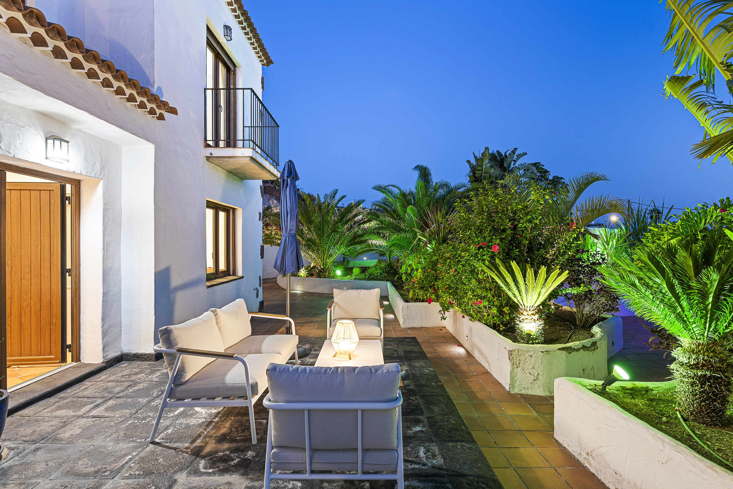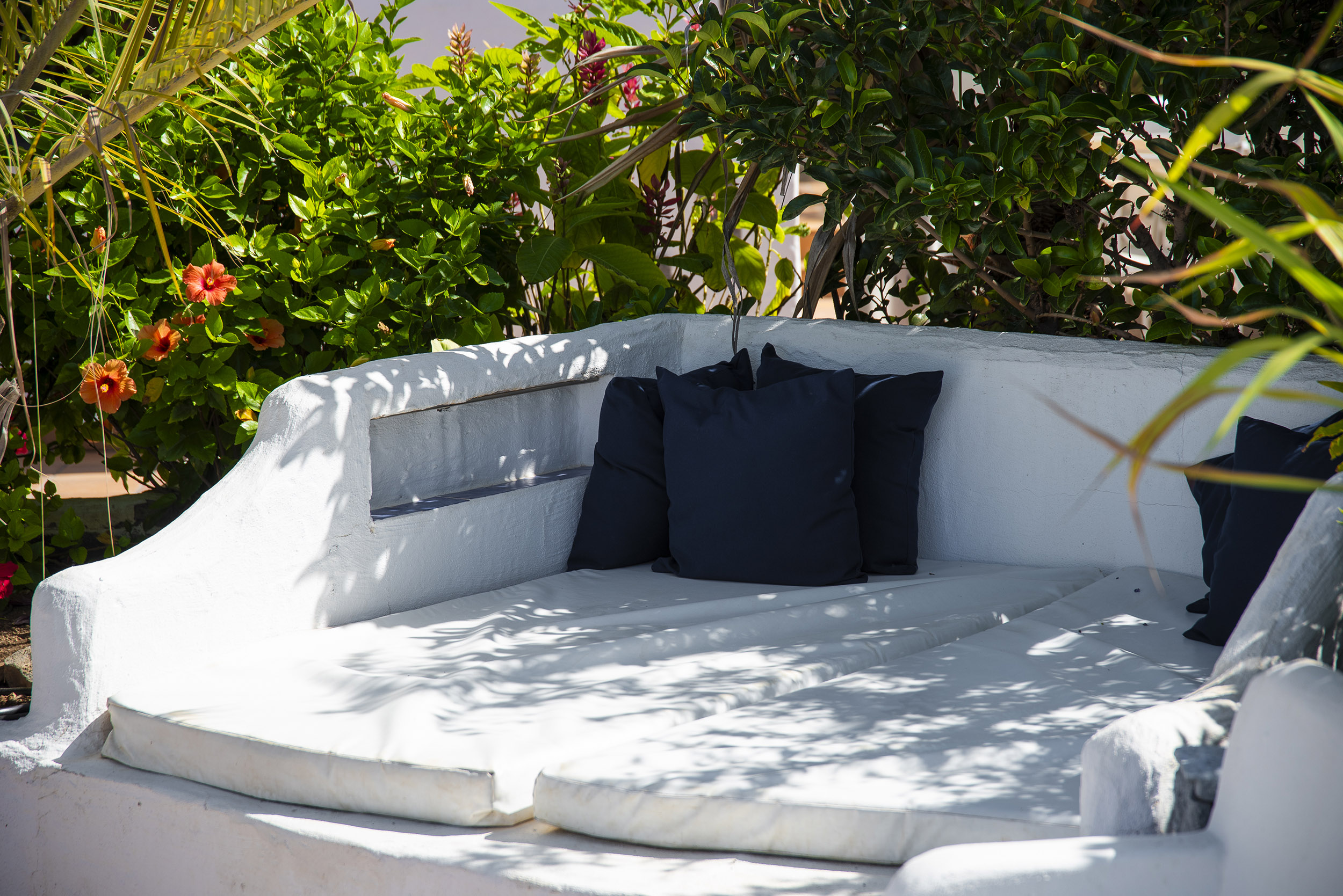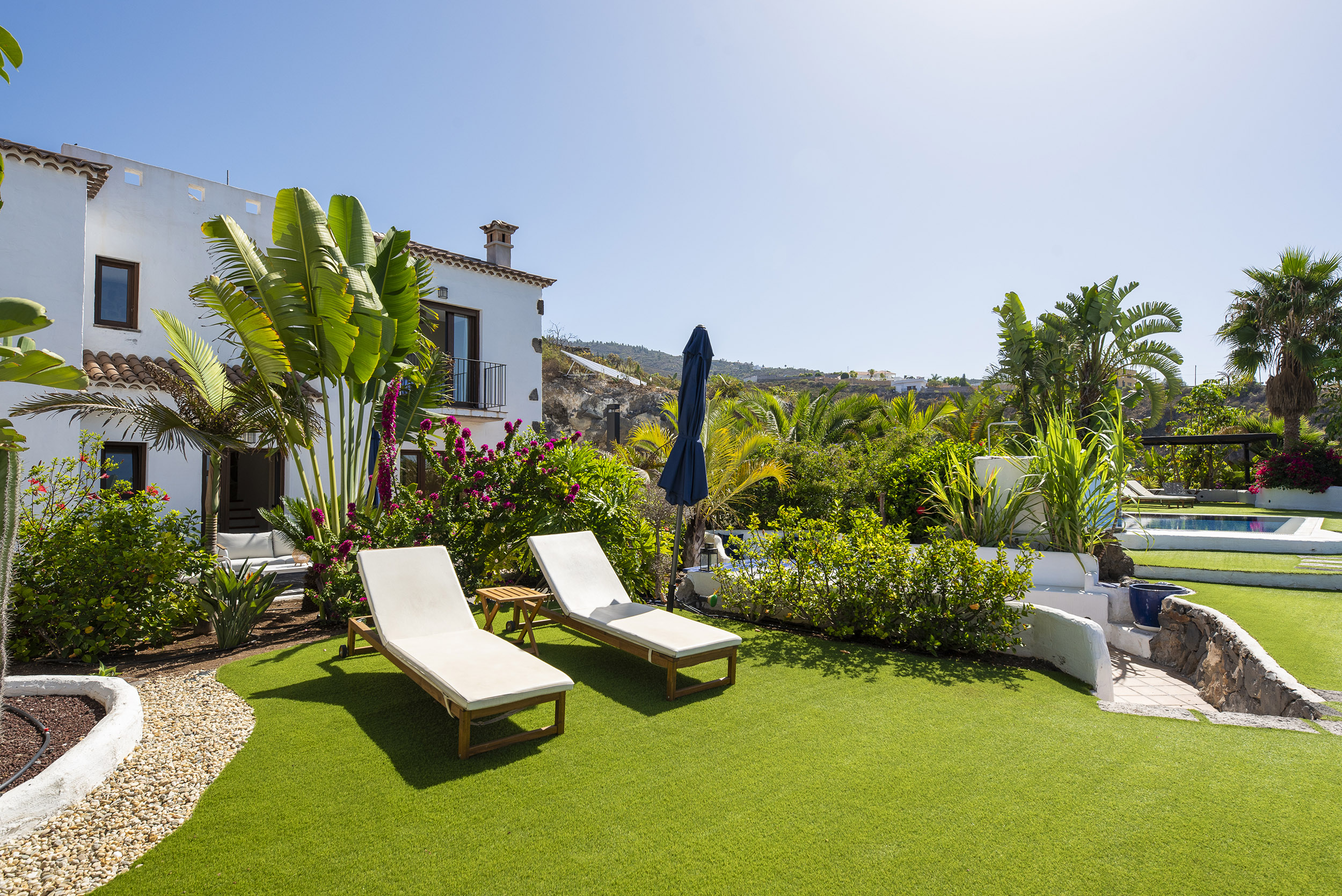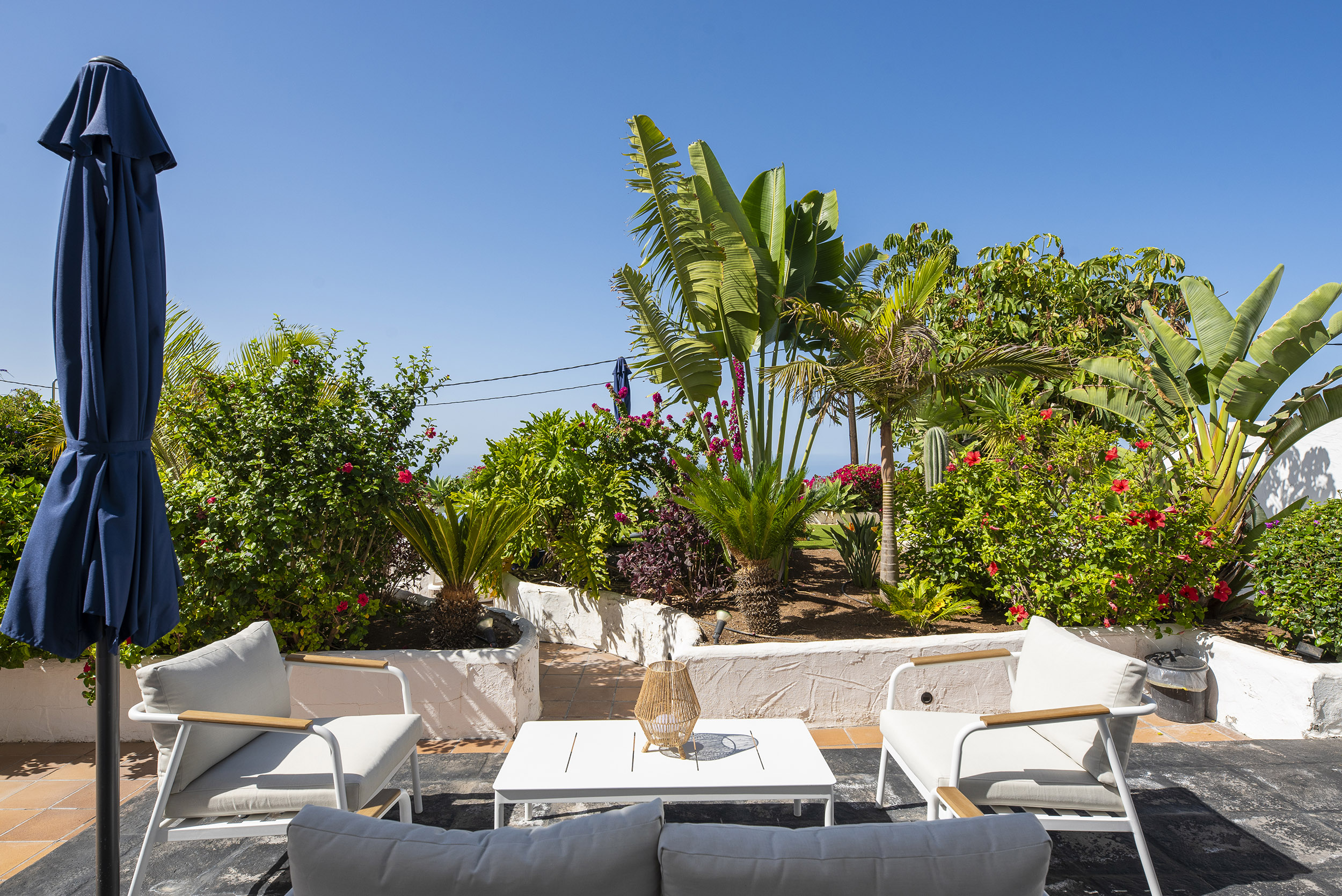der Mitte des Gartens befindet sich eine chill-out Area mit Blick auf La Gomera