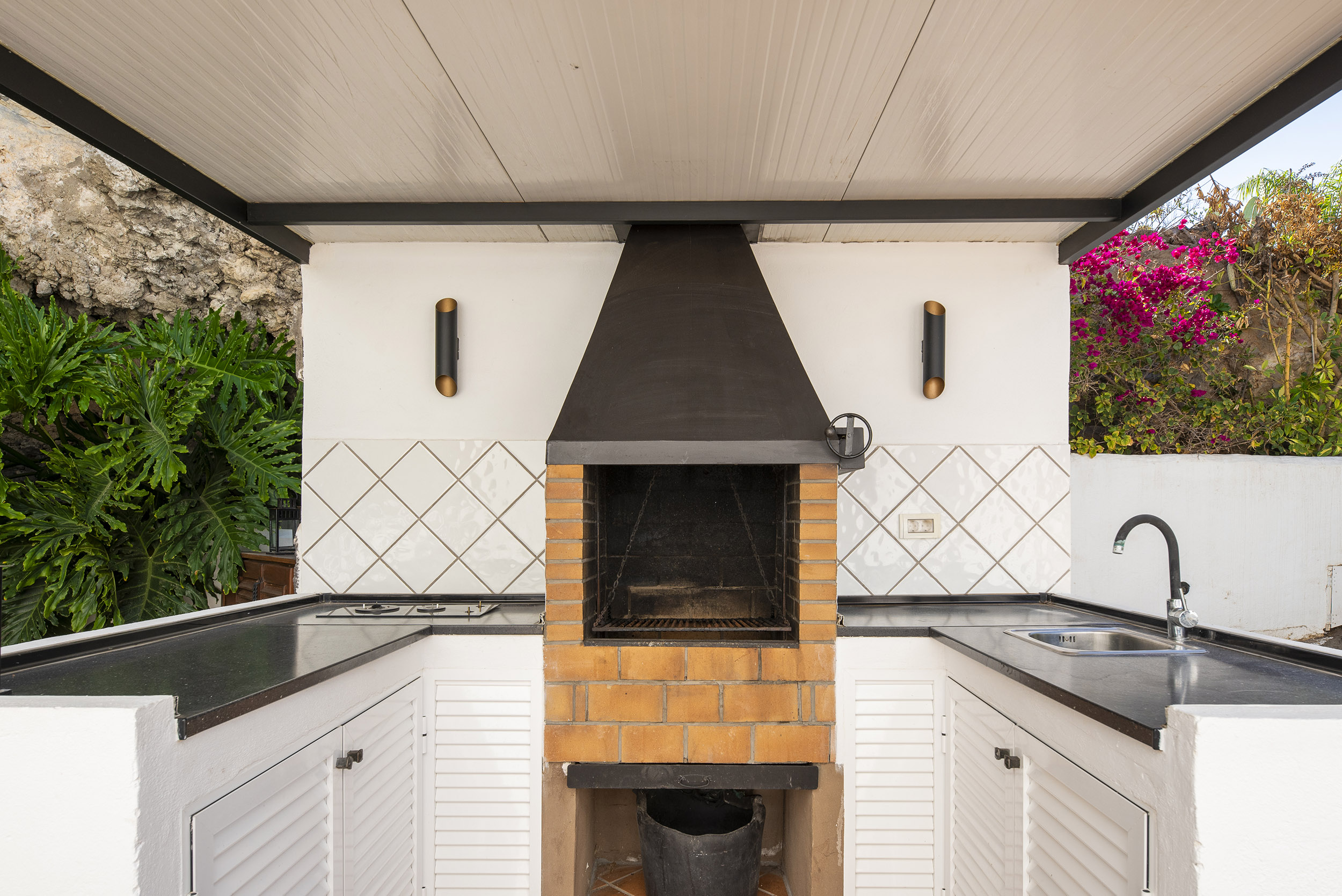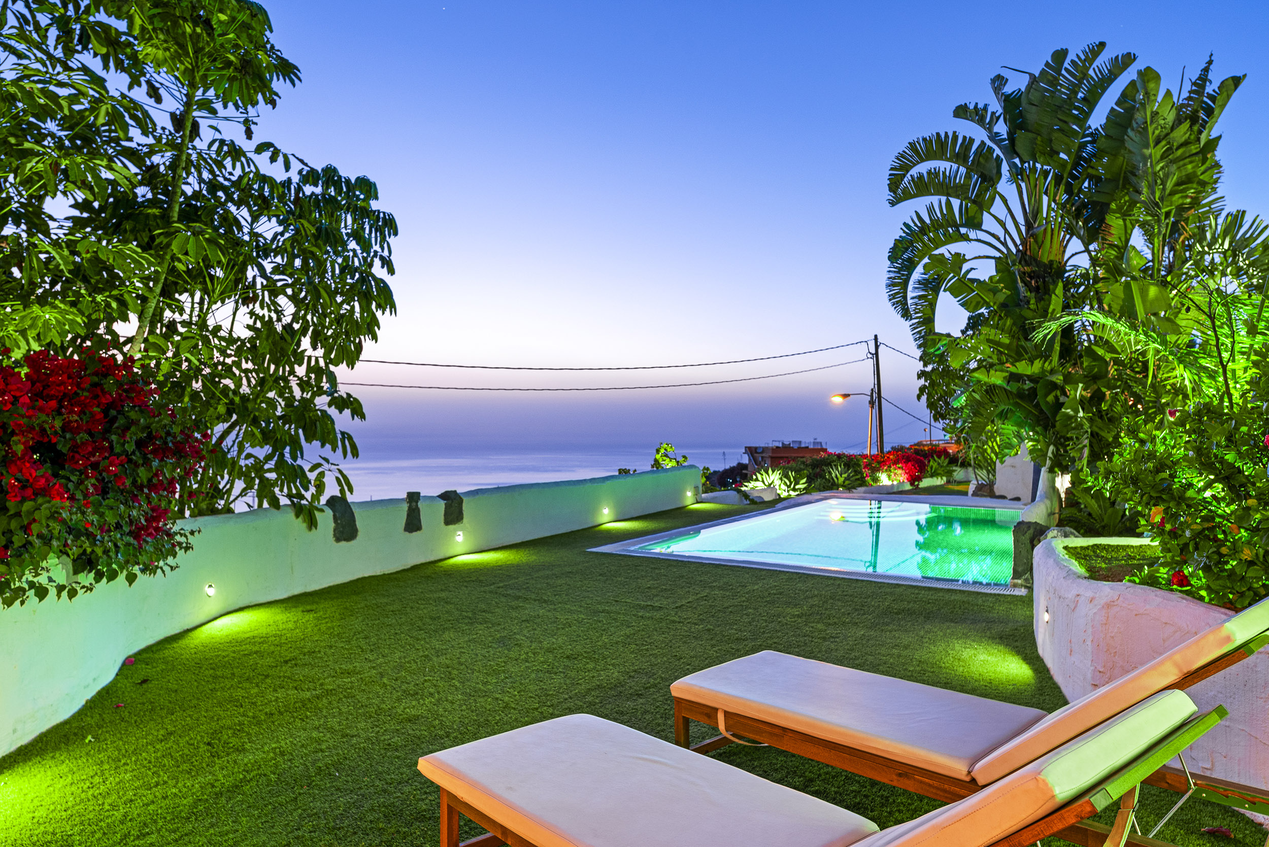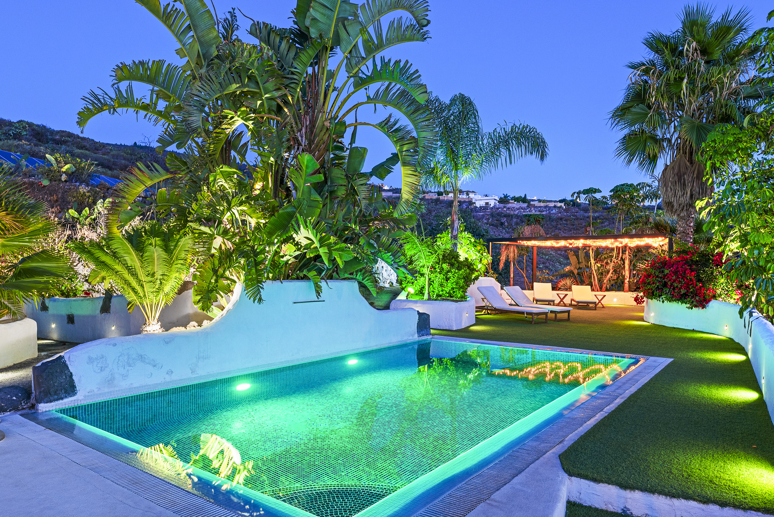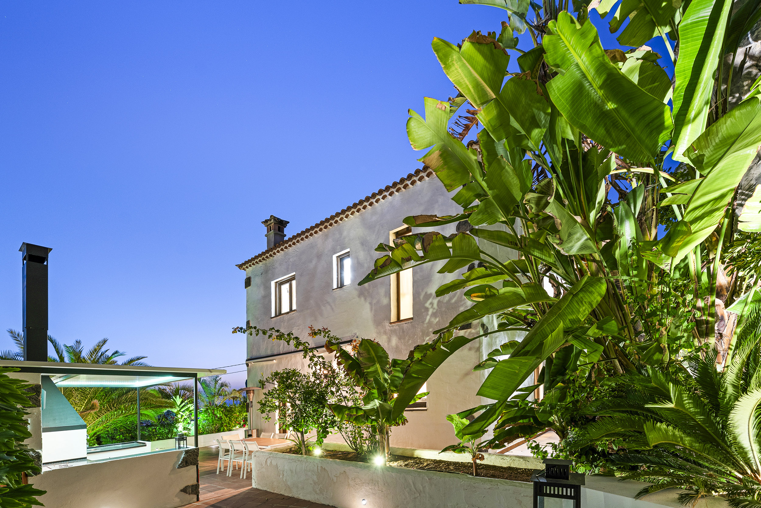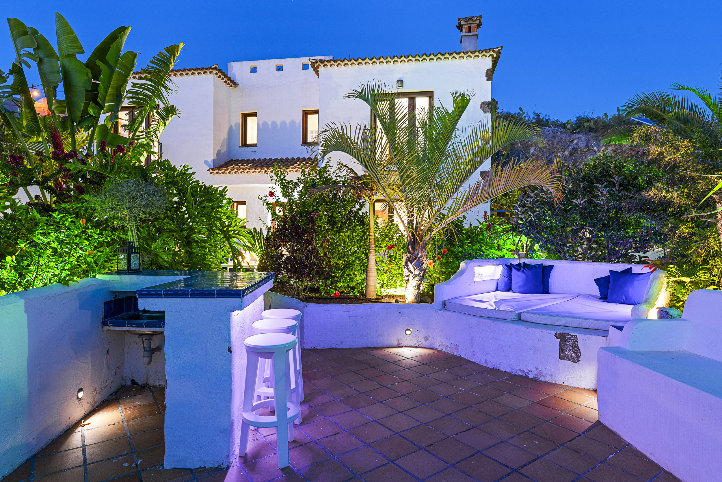 der Mitte des Gartens befindet sich eine chill-out Area mit Blick auf La Gomera
