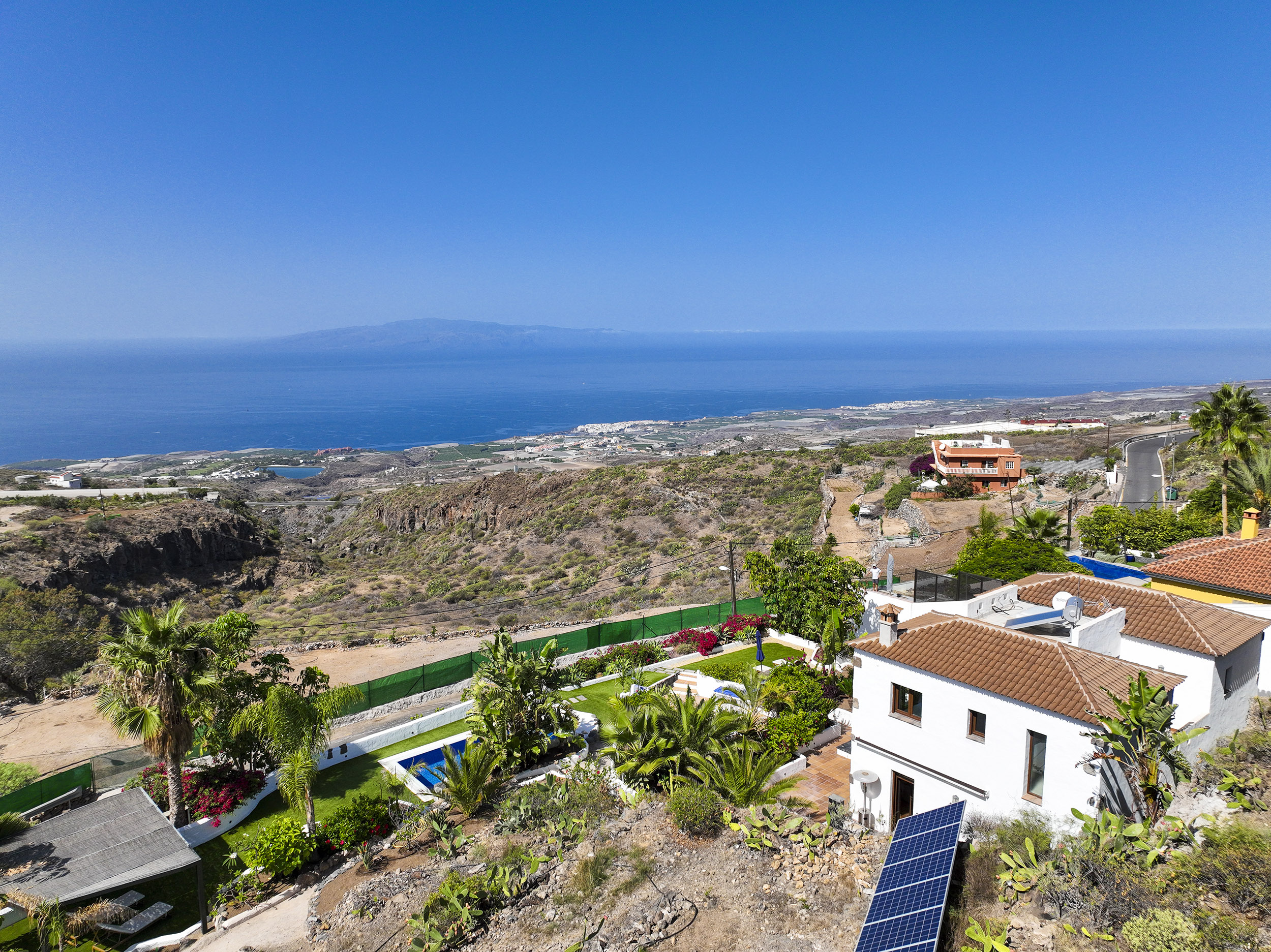 Das Haus befindet sich auf der klimatisch besten Seite von Teneriffa auf ca. 590 Höhenmetern mit traumhaftem Blick auf die Nachbarinsel La Gomera.